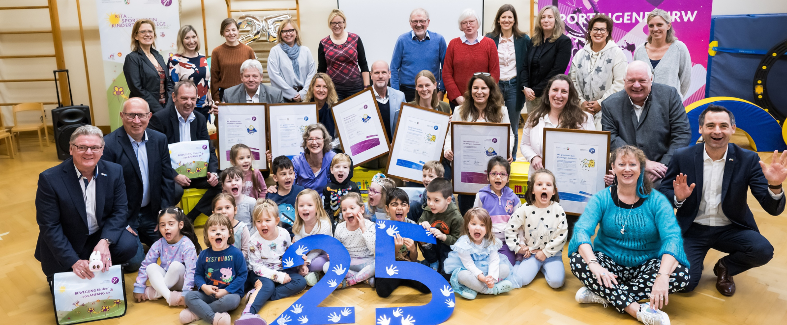 Gemeinsam mit Bürgermeister Otto Neuhoff und dem Präsidenten des Landessportbundes Stefan Klett würdigten sie im Rahmen der Feierlichkeiten dieses besondere Programm. „Mit der Bewegungsförderung so früh wie möglich zu beginnen, ist ein besonderes Anliegen der Landesregierung, denn das Bewegungsverhalten in jungen Jahren prägt nachweislich die weitere Bewegungsbiographie im späteren Leben“, so Andrea Milz. „Bewegungsförderung ist zudem eine wichtige Säule in der frühkindlichen Bildung“, so Andrea Milz weiter.
