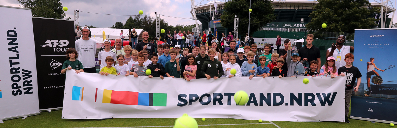 Aufregendes Turnier-Abenteuer: Hunderte Kids aus Ostwestfalen-Lippe erlebten am „Billie Green Kids‘ Day“ bei den 31. TERRA WORTMANN OPEN Weltklassetennis aus nächster Nähe – und konnten auch selbst zum Schläger greifen und bei vielen anderen Spezialangeboten aktiv werden. In Kooperation mit dem Sportland.NRW nahmen 70 Schulen aus der OWL-Region an einem Projekttag teil. Zu den Highlights für den Nachwuchs zählte ein Kindertraining mit Unterstützung von Dunlop, bei dem die beiden aufstrebenden ATP-Doppelstars Constantin Frantzen (Düsseldorf) und Hendrik Jebens (Stuttgart) als Coaches mitmischten und auch GNTM-Teilnehmer Marvin aus Bielefeld zu Gast war. „Wie freuen uns, so viele Kinder und Jugendliche auf der Anlage begrüßen zu können. Es war sicher ein spannender Tag mit viel Spaß, Action und Unterhaltung für alle“, sagte Turnierdirektor Ralf Weber.